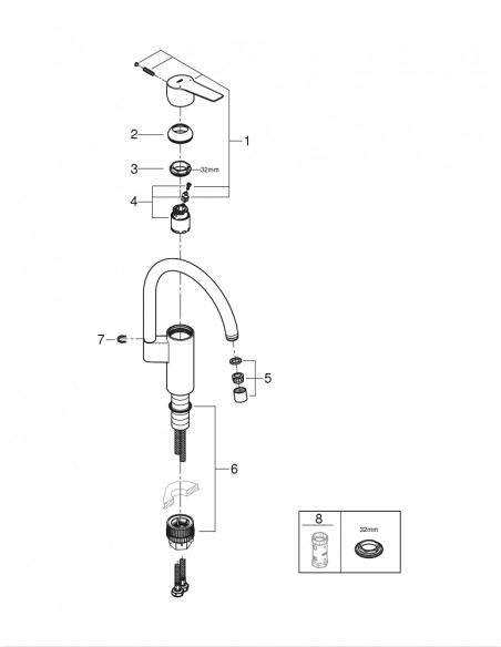 Grifería De Fregadero Grohe Eurosmart Caño Curvo