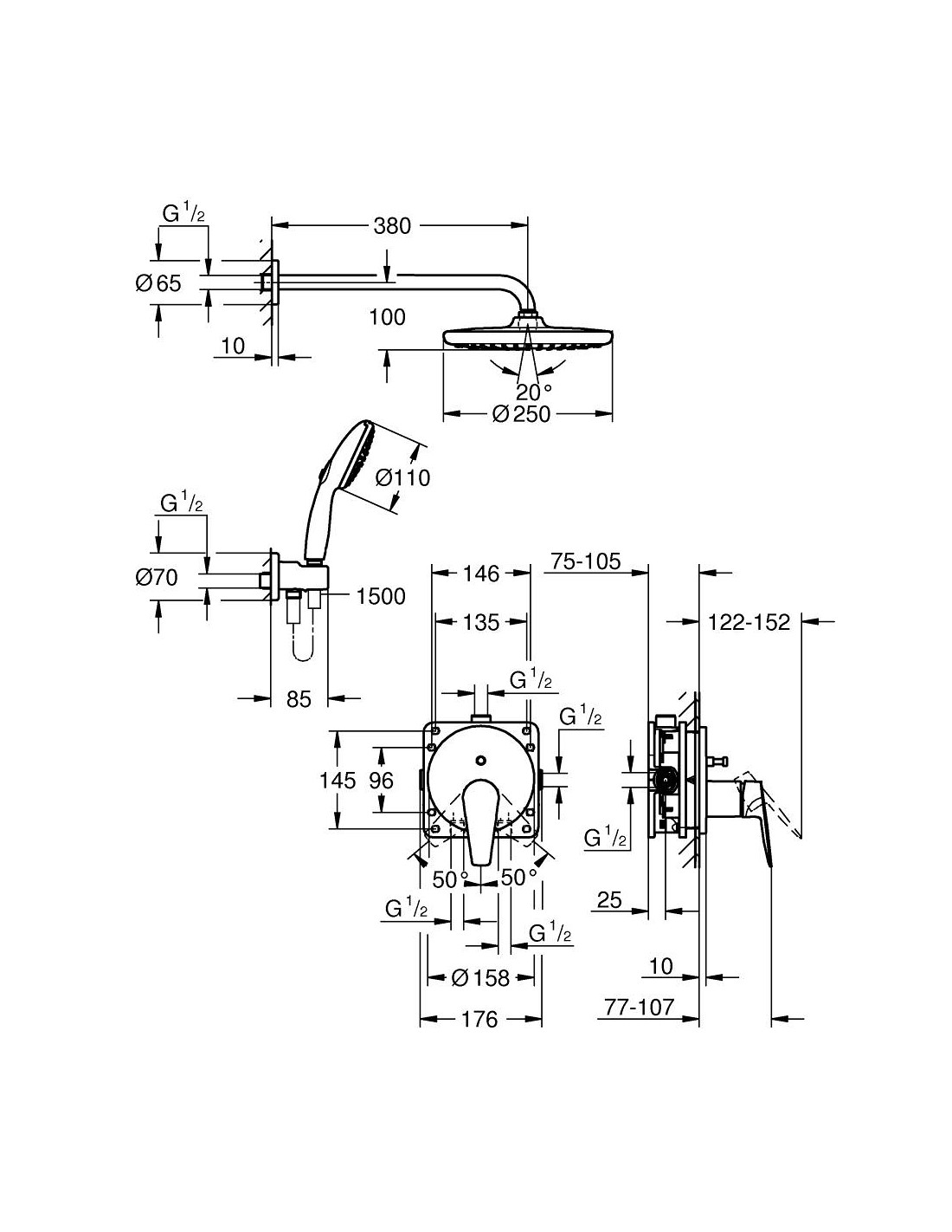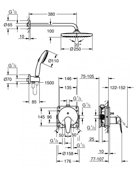 Conj Empotrable Ducha Mural Grohe Bauedge Tempesta250