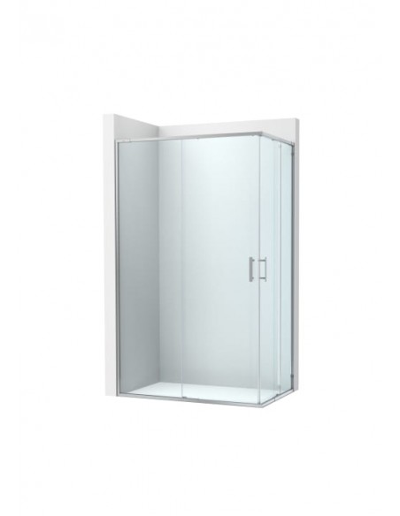 Mampara En Vértice Corredera Roca Victoria Plus L2 Perfilería Plata Brillo Cristal Transparente