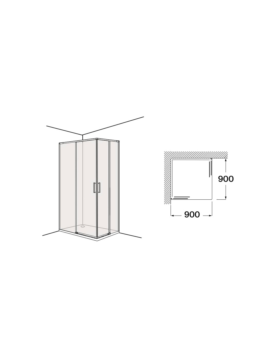 Mampara En Vértice Corredera Roca Ura-n 2l2 Perfilería Plata Brillo Cristal Transparente